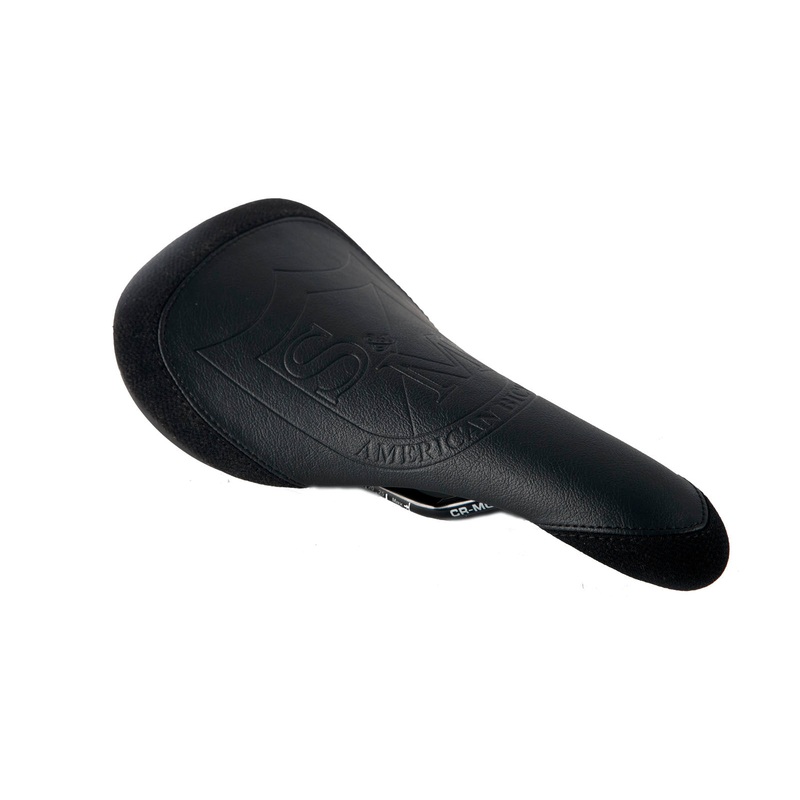 S&M Shied Railed Seat Hollow 8MM Cr Mo RailsShield Embossed Black Leather w / Kevlar Nose and TailMid weight Padding
